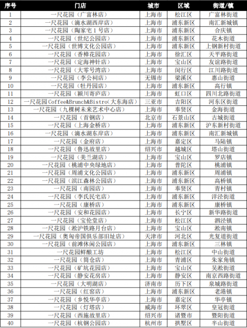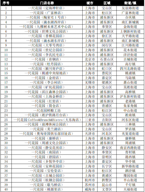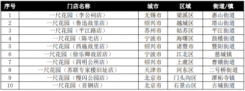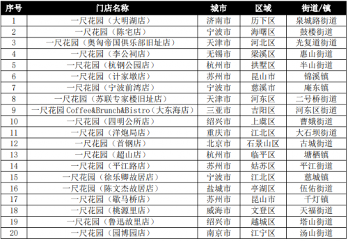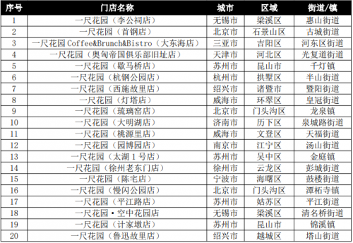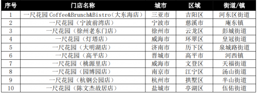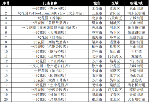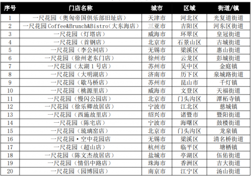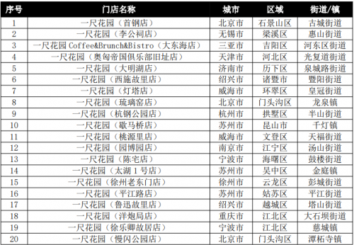 (4)关注度点评:从上海门店关注度TOP30看,关注度上升的有15家,其中位居前6名为滨江森林公园店、滴水湖东岸店、上海金桥店、滴水湖西岸店、李氏民宅店、桃浦中央绿地店,基本都位于浦东新区;保持的有4家;去年新开店入榜的有4家,下降的有11家,后者下降的因素与新店入围有关,新鲜度降低;从全国门店关注度TOP40看,与全国消费量TOP40中市外占比仅15%不同,市外店明显比例增大,有12家入围,占30%;其中TOP10有3家,TOP20有5家,表明一尺花园的引进,对提升所在城市的社会关注度具有明显效果。