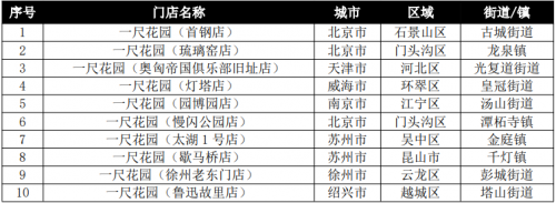 市外门店TOP20排名中,北京有3家,占15%;长三角地区为11家,占55%;