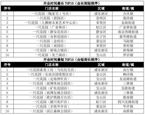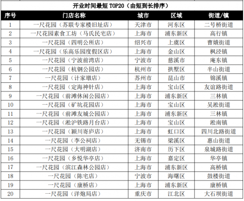 (1)全国门店开业时间最长(2801天)和最短(60天)TOP20