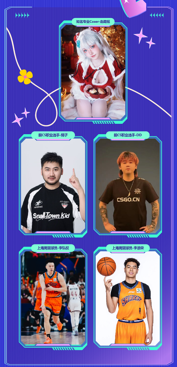 大咖面基与绝美开场:众多人气Coser将带来惊艳的元气开场秀,打破次元结界。知名专业Coser走路摇、前CS职业选手茄子与DD、上海男篮现役球员李弘权及李添荣将相继登场,与现场粉丝展开零距离的亲密互动。